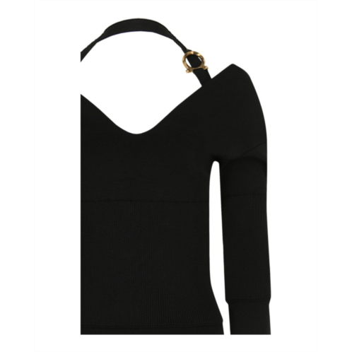 Ferragamo presents an exquisite V-neck long sleeve bodysuit, a masterpiece of Italian craftsmanship that defines contemporary elegance. The bodysuit features a deep V-neckline and long sleeves, complemented by adjustable halter straps for a customizable fit. A snap gusset closure enhances practicality, while its ribbed texture creates a sleek silhouette that flatters the form, making it the ideal choice for sophisticated styling. - 80% viscose, 19% polyamide, 1% polyurethane - Dry clean only - Made in Italy
