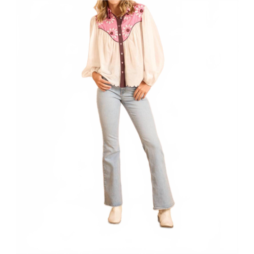 [US] BROOKS AVENUE western long sleeve blouse in embroidered wildflower pink