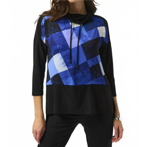 [US] Joseph Ribkoff mock neck 3/4 sleeves tunic top in black/blue plaid print
