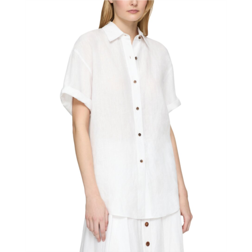 Style: blouseClosure: buttonSleeve Length: short sleeveShoulder Type: drop shoulderHem: asymmetric hemOccasion: dayFit: oversizedNeckline: spread collar