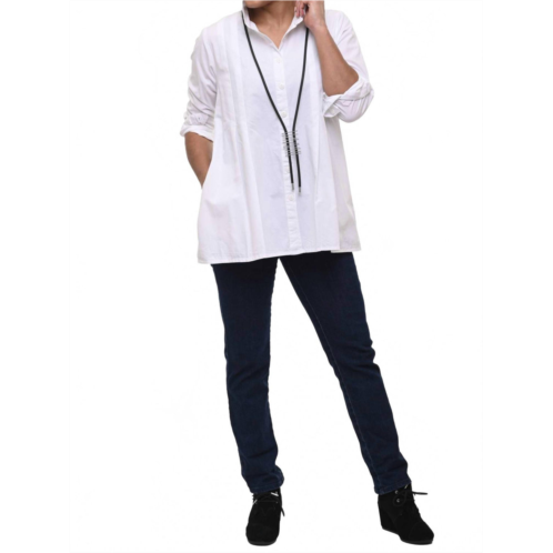 Perfectly tailored and soft to the touch.Introducing the Blythe Button Down by Tulip Clothing, a chic addition to your wardrobe with a touch of quiet luxury. Crafted from 100% cotton, this long-sleeved shirt in crisp white features precise front seams, pleating, and convenient side seam pockets. With a classic collar and buttoned cuffs, this button-down offers a tailored fit perfect for travel occasions. This versatile piece is machine washable and should be line dried.