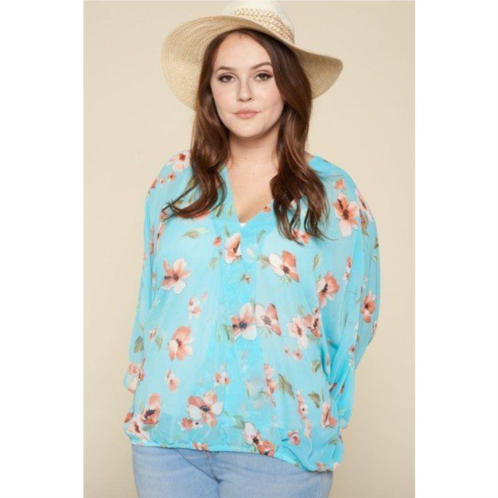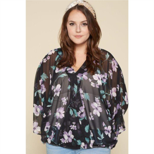 [US] TRUEDAMES plus size floral chiffon sheer surplice top
