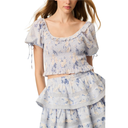 - The Top Features A Floral-Printed Cotton, Short Puff Sleeves, And Tiny Ruffle Details Line The Neckline For A Playful Finish. Pair With The Ruffle Mini Skirt For A Full Set.