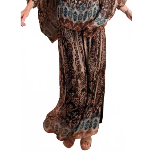 Pair this with your favorite jeans and slides for your next girls night out.Introducing the Seta Boho Print Kaftan by GIGI MODA, a chic addition to your summer wardrobe. This kaftan blouse features three-quarter sleeves and a striking leopard snake bohemian print in a chocolate hue, perfectly embodying boho chic. Crafted with a viscose blend for both style and comfort, it offers a pull-on closure and an elegant scoop neckline. Made in Italy to fit sizes XS-XL.