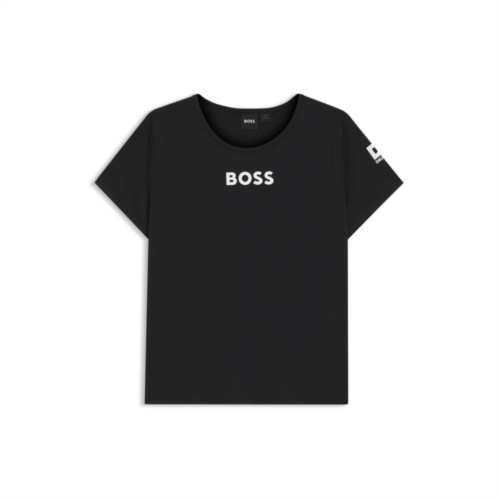 Ideal for sports, this BOSS Womenswear T-shirt is crafted in stretch jersey for flexible movement. BOSS logos and tennis artwork. Contrast details. Regular fit.This is an official style of the Dallas Open.