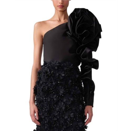 [US] Carolina Herrera one shoulder flower sleeve silk top