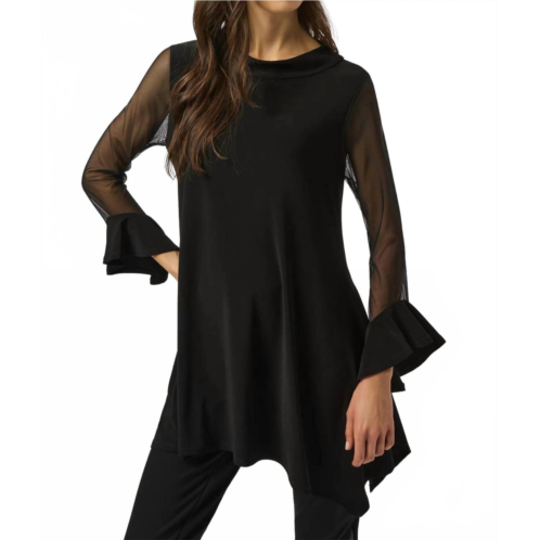[US] Joseph Ribkoff asymmetrical mesh 3/4 sleeves tunic top in black