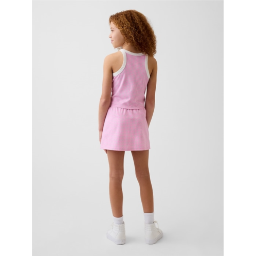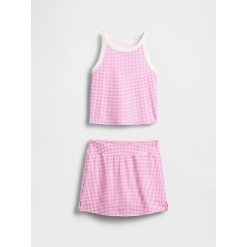 - Breathable, quick-dry stretch active knit tank and skort outfit set.