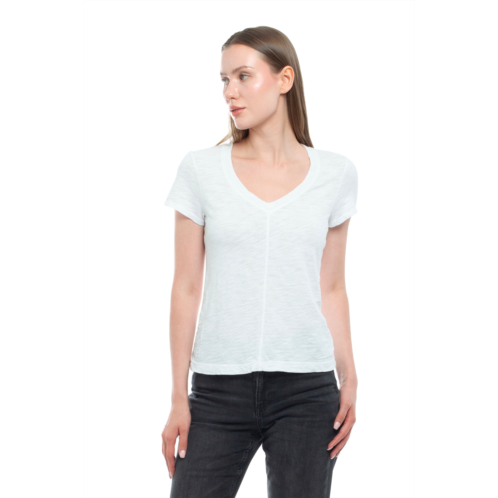 Slim Deep V-Neck Rib Back Tee A sleek, feminine take on the everyday tee. This slim-fit deep V-neck is crafted in our signature slub cotton for a soft, lived-in feel. Featuring a ribbed back panel for subtle texture and added shape, it's perfect tucked, layered, or worn on its own. Slim silhouette with deep V neckline Ribbed back panel for added detail and fit 100% Cotton Signature Slub fabrication. Made in the USA.