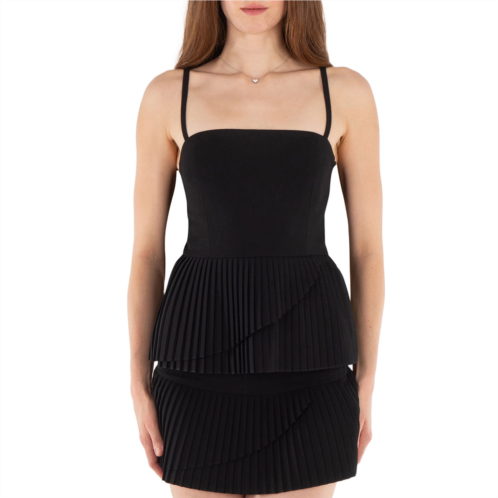 MM6 Ladies Tops. Fashion category - Shirts & Blouses. SKU - S52NC0340-900-BLACK. Color - Black. MM6 Sleeveless Pleated Peplum Top. This top features pleating, a square neckline, sleeveless design, tailored silhouette, peplum hem, and a side zip. Material - Polyester, Viscose, Elastane. Made in Italy.