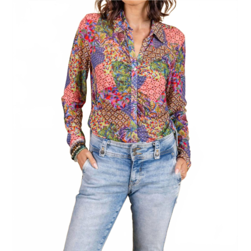 [US] PAPARAZZI mesh print rouched front blouse in patchwork