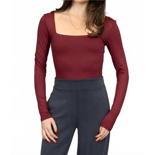 [US] RD International stacy front and back square neck bodysuit in oxblood