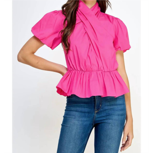 [US] Strut & Bolt cross neck puff sleeve blouse in fuchsia