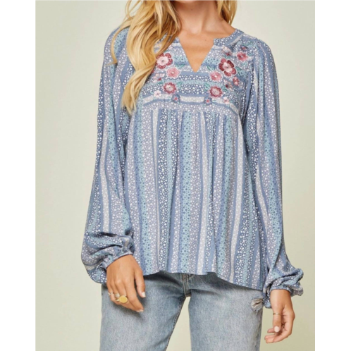 [US] ANDREE BY UNIT floral embroidered babydoll top in blue