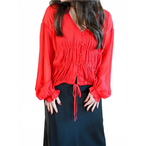 A timeless blouse that will never go out of style.Introducing the Beach Street Button Up Blouse by GREYLIN in a striking Cherry hue, perfect for your wardrobe. This women's blouse features long sleeves and is crafted from 100% polyester, offering a relaxed, flowy silhouette with a V-neckline for a flattering fit. Closure is a button closure, enhancing its timeless and structured style. For care, machine wash and lay flat to dry for lasting quality.