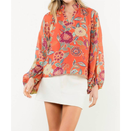 [US] THML floral vneck top in red