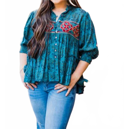 [US] Layerz Clothing embroidered paisley top in teal