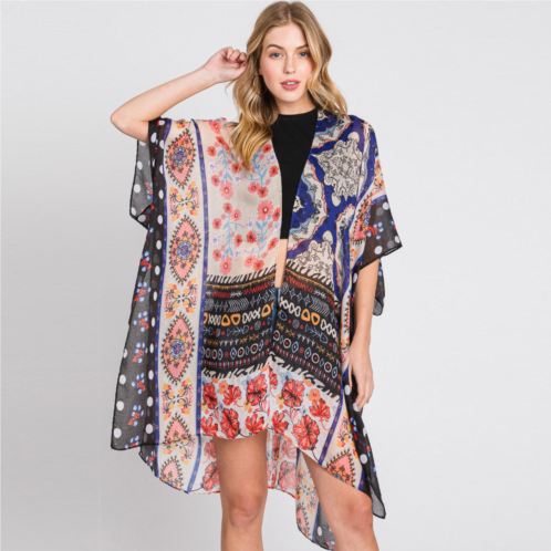 [US] TRUEDAMES abstract paisley flower print kimono poncho