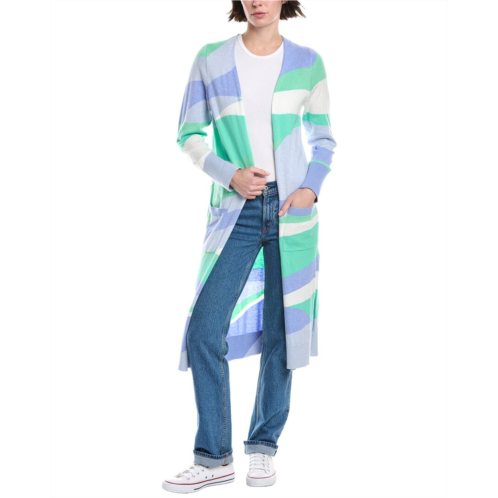 Elevate your winter wardrobe with the WISPR Abstract Maxi Silk-Blend Cardigan in Frost Blue. This stunning cardigan features a unique abstract design in a blend of cotton, nylon, and silk for a luxurious feel. The open front silhouette is complemented by two front pockets, ribbed trim, and side slits at the hem for added style. Perfect for layering over your favorite outfit, this cardigan is approximately 43 inches from shoulder to hem and is machine washable for easy care. Imported and available in multiple sizes. Model is 5'9 and is wearing a size small. Please note measurements may vary slightly by size.