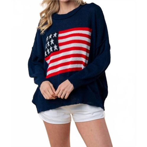 [US] White Birch american flag print lightweight sweater - plus in navy