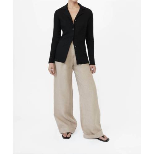 This cardigan will be a sweater-rotation favorite.Introducing the Rib Knit Collared Cardigan by Dl the Label, a sophisticated addition to any minimalist wardrobe. Crafted from responsible Micromodal for a soft, silky feel, this solid black cardigan features long sleeves and a chic collar neckline. Designed for versatility, its button closure offers ease and style suited for spring and beyond. Care for this elegant piece by opting for dry cleaning to maintain its finest quality.
