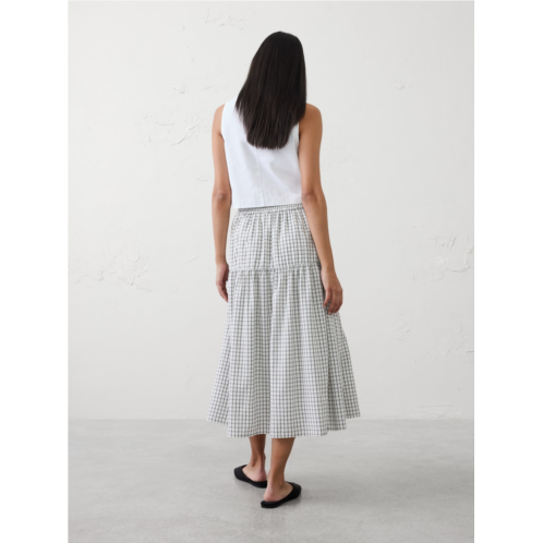 Linen-Blend Tiered Midi Skirt