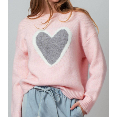[US] Urban Daizy plush heart graphic intarsia sweater in pink