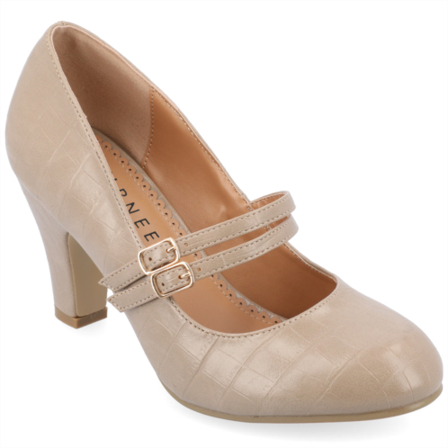 Timeless style meets all-day comfort with the Windy wide-width pump from Journee. This must-have mary jane features luxe vegan leather, double buckle straps, and a covered block heel for a mix-and-matchable look. A padded insole and round-toe create a comfortable fit. With a heel like this in your rotation, you'll always look and feel your best. - Heel Height - 3 1/4-inch