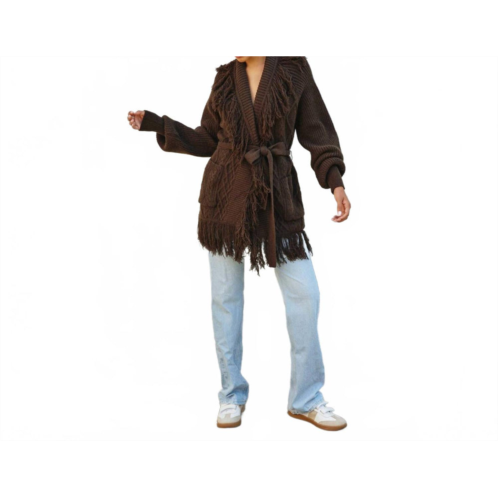 [US] DRESS FORUM cable fringe detail cardigan in brown