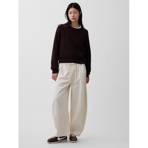 - Soft cotton-blend shaker-stitch pullover sweater. In a relaxed, slightly cropped fit.