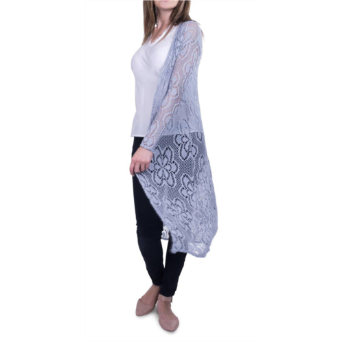 Throw this adorable cardigan over any cami or tank top.Discover the Clara Long Knit Cardigan by GIGI MODA, a chic addition to any wardrobe in soothing Dove Gray. This long sleeve, crewneck cardigan is crafted from 100% Viscose, providing a soft and stretchy fit that drapes elegantly over any outfit. Made in Italy, it features a textured floral design, perfect for travel and fall occasions such as Thanksgiving. Closure - Pull on. Care - Hand wash and lay flat to dry.
