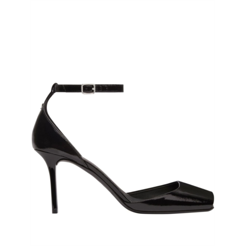 These exquisite black patent leather pumps feature a square peep toe and a delicate ankle strap with a sleek buckle. The slender stiletto heel adds to the elegant aesthetic, making them a striking choice for any sophisticated outfit. - Material - Black patent leather - Toe Style - Square peep toe - Ankle Strap - Delicate with buckle - Heel Type - Slender stiletto
