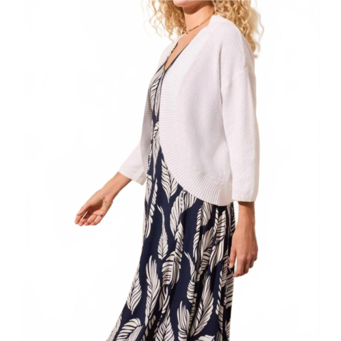 A classic fit that works just as good buttoned as it does left open.Introducing the Curved-hem Cocoon Cardigan by TRIBAL, a chic minimalist piece perfect for your spring vacation wardrobe. This cardigan features a flattering V-neck and three-quarter sleeves, crafted from cozy Cotton for ultimate comfort. Designed in a versatile white solid pattern, it offers a simple pull-on closure for easy wear. Care for this stylish layer by hand washing it and laying it flat to dry.