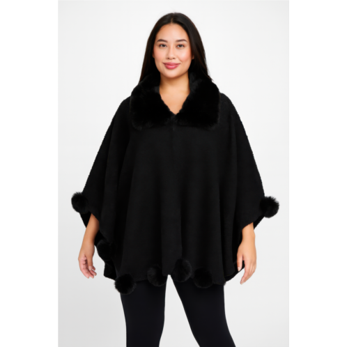 - Style - Boucle pom trim faux fur collar cape