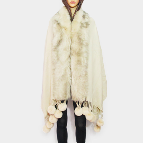 [US] TRUEDAMES faux fur trim pom pom dangle poncho