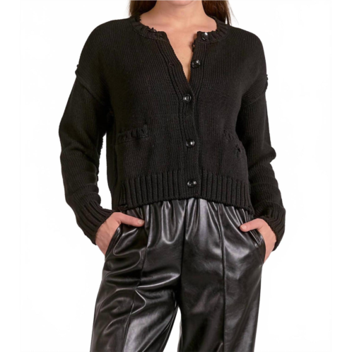 You'll be reaching for this comfy and classic v-neck sweater all season long.Elevate your layering game with the Women's Kaiden Knit Cardigan by ELAN, featuring a textured, black design for chic versatility. This oversized, slouchy V-neck piece with long sleeves is perfect for those relaxed vacation days or spring outings. Equipped with a convenient button closure, it adds a casual, laid-back charm to any ensemble. Although specific care instructions are not provided, its effortless style and comforting warmth make it a go-to choice for women seeking a monochrome trend.