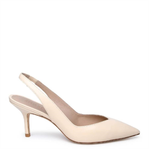 Stuart Weitzman Ladies Heels. SKU - SG905 AYI-ALABASTER. Color - Alabaster. Stuart Weitzman Eva 75 Slingback Pumps. The Eva pump featuring a pointed toe and a low-cut vamp that exudes timeless elegance. Designed with a slingback strap and elastic insert for a secure yet comfortable fit, it rests on a refined 75 mm (3”) stiletto heel that offers both height and wearability. Made in Spain.