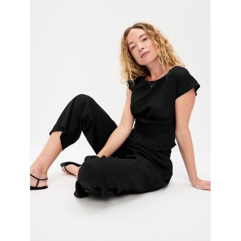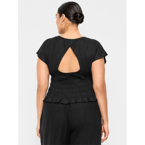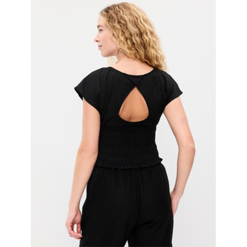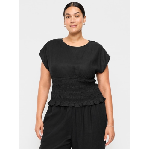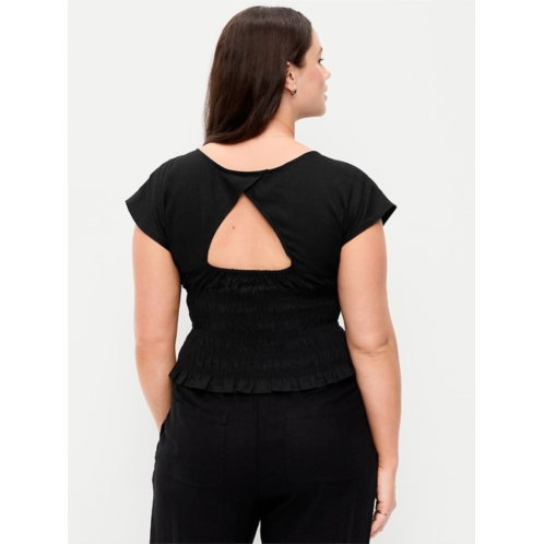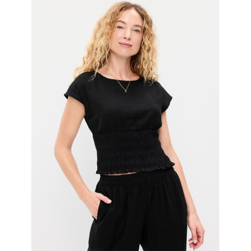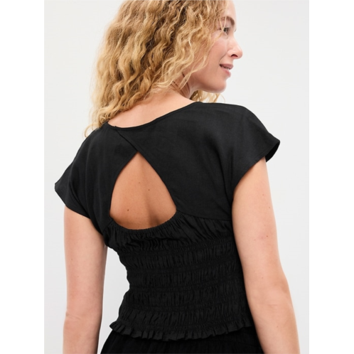 [US] OldNavy Linen-Blend Short-Sleeve Smocked Top