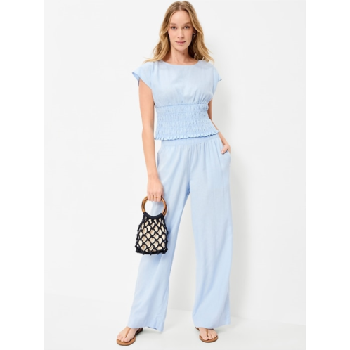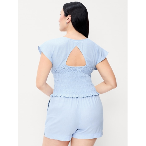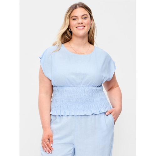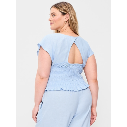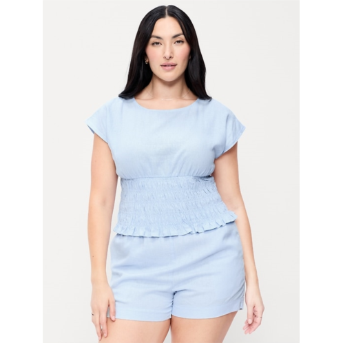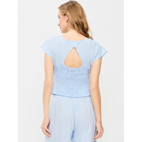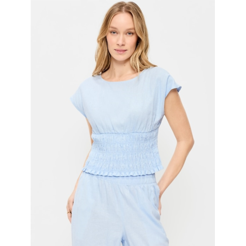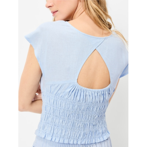 [US] OldNavy Linen-Blend Short-Sleeve Smocked Top