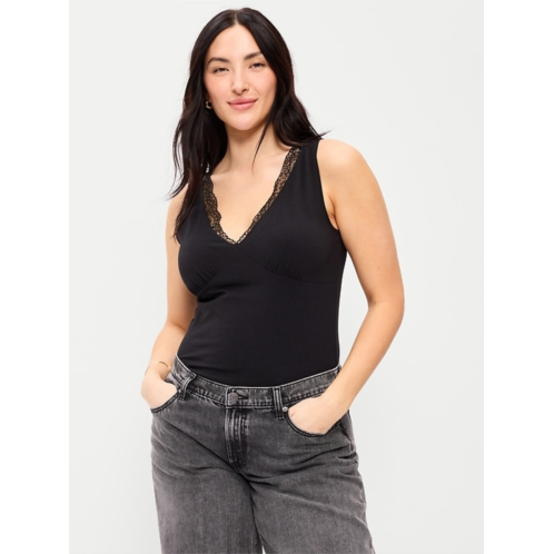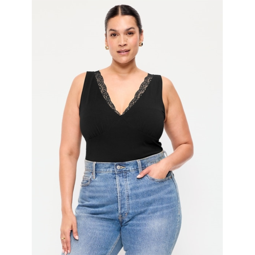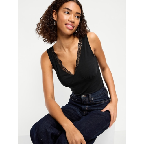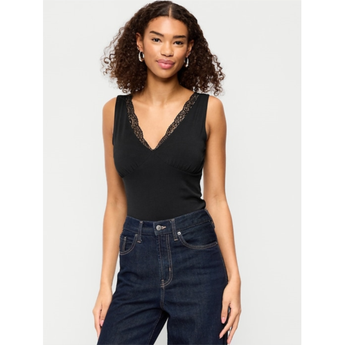 [US] OldNavy Sleeveless Lace-Trim V-Neck Ribbed Top