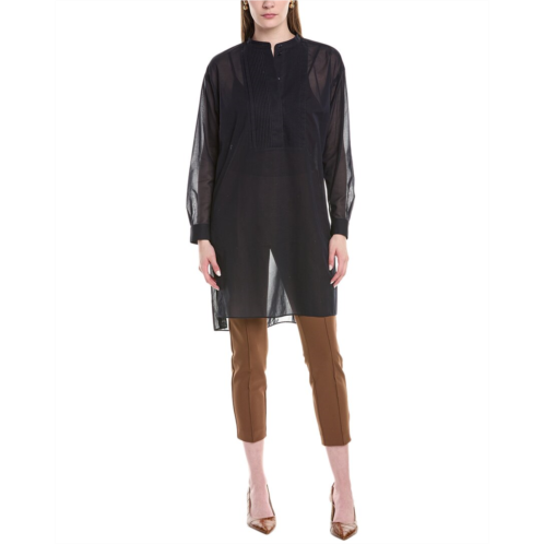 Set-in sleeves with underarm gussets aid mobility, and a drop-tail hem offers additional coverage