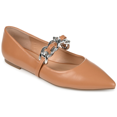 The ballerina flat with an edgy twist, the Metinaa by Journee Collection. These adorable ballerina flats feature soft vegan leather embellished with a chain accent and a pointed-toe. A tiny block heel and a padded insole complete the design for all-day comfort. - Heel Height - 1/2-inch