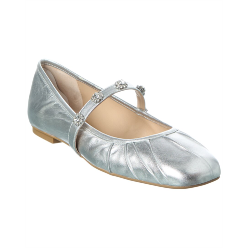 - Justina Leather Mary Jane Ballet Flat In Silver Leather And Silver-Tone Hardware With Crystal-Embellished Strap