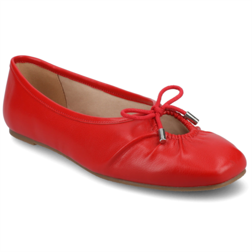 The Callee ballet flat from Journee features a stylish square-toe design with a ruched keyhole cutout and a delicate bow for added charm. Its cushioned insole ensures lasting comfort throughout the day. This versatile women's flat combines both fashion and functionality, making it a great choice for everyday wear in your life.