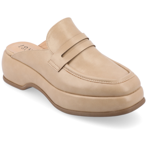 Meet Antonina, the stylish and comfortable loafer flat by Journee Collection that's perfect for any casual occasion. Made from vegan leather and featuring a square toe, Antonina showcases a 90s-inspired chunky 2 1/4 in platform heel and slip-on mule design that's perfect for achieving an Ivy League look. With a 4 mm insole, Antonina ensures a comfortable fit all day long, making it a versatile and must-have addition to your shoe collection.