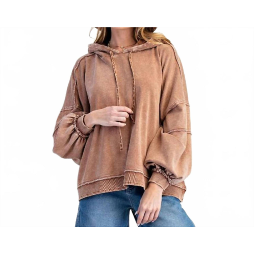 Whether you're running around town or lounging at home, this sweatshirt works for both.Discover effortless style and comfort with the Glen Flowy Detailed Hoodie by Easel. Designed with long balloon sleeves, this hoodie features a relaxed, flowy fit, complete with dropped shoulders. Crafted from a 60% Cotton and 40% Polyester blend, it boasts a Terry Knit fabric with a mineral washed finish. Closure type - Pull on, with an attached hood and matching drawstrings, this hoodie offers a perfect casual charm, ideal for travel and everyday outings.