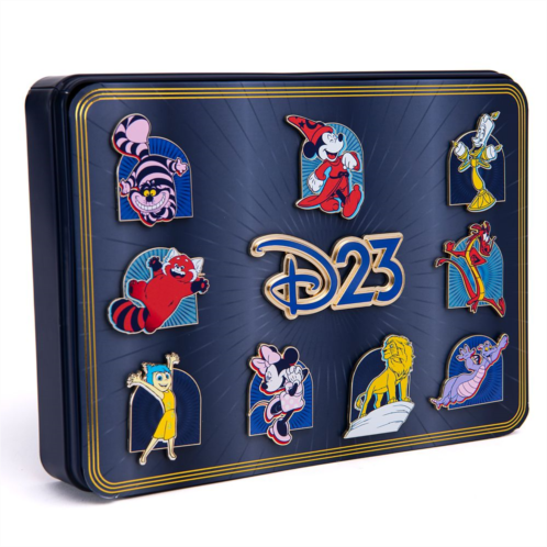 - Presented in a collectible tin box printed with gold ''D23 Gold Member Pin Set'' text
