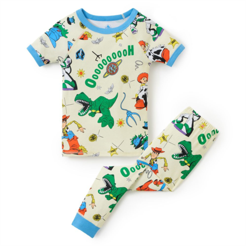The cast ofToy Storytake on a new perspective when viewed from below on this sleep set. The allover print on this two-piece sleepwear combination includes Buzz, Woody, Jessie, Space Aliens and Rex looking down. The short sleeve top includes raglan sleeves and contrasting ribbed trim and a big ''OooooooooH'' to help them fall asleep!