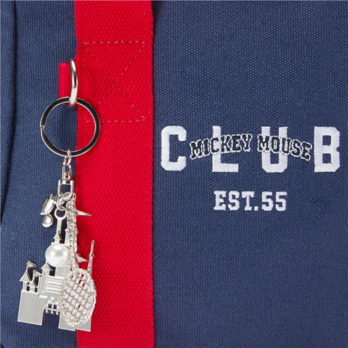 Hey there! Hi there! Ho there! Mickey Mouse Club fans will be excited to throw on this compact canvas crossbody tote by Her Universe. The versatile design includes top carry handles and a shoulder strap while Club members will love the embroidered details and sparkly keychain bag charm complete with Fantasyland Castle and a racket for a sporty touch.