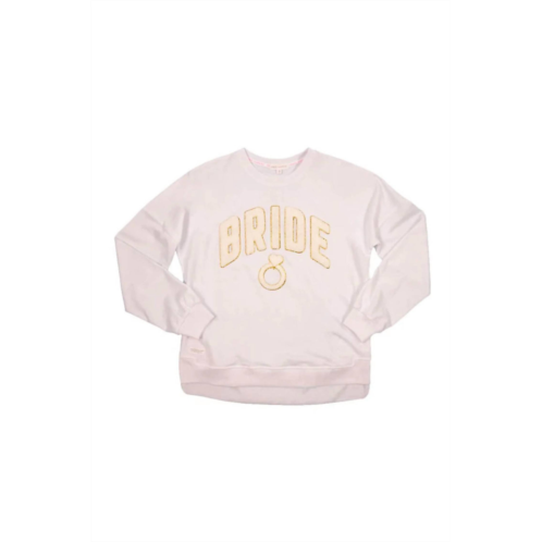 Whether you're running around town or lounging at home, this sweatshirt works for both.You will love this Simply Southern SparkleBride Sweatshirt for Women in White! With its fleece lining, long sleeves, and adorable graphic, this is the perfect sweater for spring!Features - Color - White. Women’s crewneck pullover. Long sleeves. Fleece lining. Ribbed neck, cuffs and ham. Front graphic - reads 'Bride' with ring graphic inchenille sparkle letters. Simply Southern logo tag on hemMeasurements from a size small - Length from center back - 25” Chest - 44”